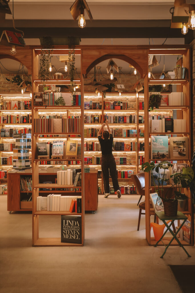 Near Ostkreuz, Shakespeare and Sons blends New York café flair with Berlin’s literary soul. Their English-language collection is one of the best in the city, from indie publishers to timeless novels.